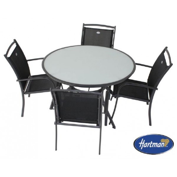 Aluminium Wickerset, tafel met glasplaat en 4 Hartman wicker stoelen